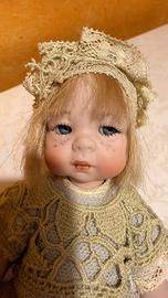 bambola in porcellana buscuit Marigiò,conosciute e apprezzate ormai in tutto il mondo.Tutto nella linea Marigiò è curato nei minimi dettagli dal momento che ogni fase della lavorazione viene seguita e controllata dalla creatrice. I capelli, umani o di fibre pregiate, acconciati armoniosamentenell'insieme in base alla personalità del soggetto.Gli abiti e gli accessori caratterizzano le due linee delle creazioni Marigiò: quella "bambina classica", che ci riporta ad un epocapassata, e quella "fashion doll", che rievoca i costumi d'altri tempi.Ogni modello è frutto di una accurata ricerca stilistica ispirata dafoto o cartoline ingiallite dal tempo da qualche fotogramma rubato ad un film d'epoca. I tessuti, sempre in fibre naturali e pregiate come lino, cotone, seta,sono a volte vecchi, così pure i pizzi e merletti Poiché ogni esemplare realizzato dal laboratorio di Maria Rossi è un prodotto di alto artigianato, le bambole Marigiò sono quasi tutte realizzate in tiratura limitata: dai 50 ai 100 fino ad unmassimo di 300 esemplari numerati e corredati da un certificato di garanzia