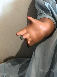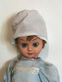 Bambola matrimoniale antica anni '50/60 in celluloide, capelli in mohair, abito originale, occhi con ciglia integre che si chiudono, unico difetto il mignolo della mano destra è sbeccato (vedi foto), sigle 60 65 sul collo, 65/A sotto le scarpe. Oggetto da collezione.