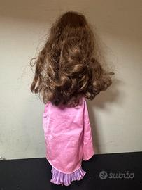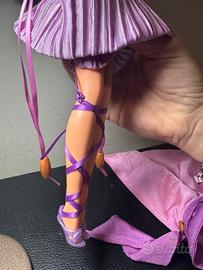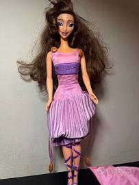 Bambola di Megara dal film Disney Hercules, del 1996. Indossa un abito lungo nei toni del rosa e del viola. La prima gonna si rimuove e si ottiene un secondo look. Tirando i lacci laterali è possibile accorciare la gonna plissettata.