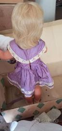 vendo bambola bellissima Bonomi originale anni '50 '60 alta circa 60cm vestito viola flirty eyes sguardo accattivante PARLANTE (dice mamma) in scatola originale no difetti mai usata