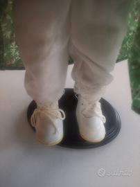 In vendita bellissima bambola da collezione vintage in porcellana, alta circa 40 cm (dalla testa ai piedi, senza base). Materiali di pregio: Testa, braccia e gambe in porcellana fine smaltata di alta qualità (porcellana dura, lucida e ben modellata), corpo morbido in tessuto imbottito. Viso dolce e realistico: Occhi blu grandi fissi, labbra marrone scuro intenso, guance delicate e espressione tenera. Capelli eccezionali: Castani sintetici lunghissimi e foltissimi – frangia densa che copre completamente l'attaccatura (non si vede neanche un millimetro di cute, effetto chioma naturale voluminosissima come capelli veri super folti!) Abito originale vestitino country/elegante con corpetto verde a fiorellini, gonna ampia in satin bianco lucido con balze multiple in pizzo fine, collo con volant merletto + collana di perline applicate, maniche a sbuffo in tessuto satinato, grembiulino verde floreale, rosa decorativa sul petto. Tutto pulito e integro, senza strappi o macchie evidenti. Scarpe bellissime in cuoio. Accessorio: Piccolo sacchettino di stoffa appeso al braccio (decorativo, forse con pot-pourri originale). NO base/stand non incluso. Condizioni generali: Ottime per un pezzo vintage anni '80-'90 – porcellana integra (nessuna crepa, scheggiatura o danno visibile), abito e scarpe ben tenuti con minimi segni del tempo normali per l'età. COME USCITA DAL NEGOZIO Pezzo unico per collezionisti appassionati di bambole porcellana europee (stile tedesco/italiano artigianale): capelli foltissimi realistici + abito shabby chic dettagliato + scarpe in cuoio con lacci! Ideale per esposizione, decor vintage, cameretta romantica o regalo a un'appassionata. Ritiro a mano ok.