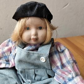 Bambola da collezione con testa, mani e piedi in porcellana. corpo morbido