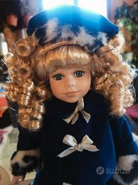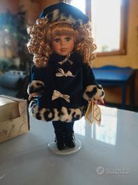 Bellissima bambola di porcellana della linea Keepsake Memories vestita in velluto blu. Alta 33 cm. Sempre tenuta in vetrina. Con scatola e cartellino COA