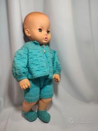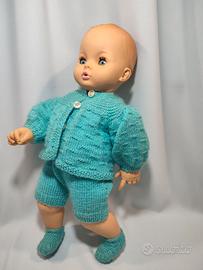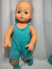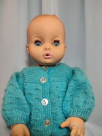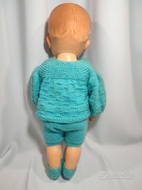 Bellissima bambola della Ratti anni 1960, alta cm. 36, con marchio Ratti Italy sulla testa e sulla schiena. Bambola interamente in vinile, capelli modellati, occhi mobili. La bambola è in buone condizioni con normali segni dovuti al tempo (il vinile in alcuni punti non coperti dal vestitino si è leggermente schiarito dovuto alla luce). Indossa un completino in lana fatto a mano e credo non sia originale ma veramente delizioso. Comprate esattamente ciò che mostro in foto. GUARDATE LE FOTO PER UNA MIGLIORE DESCRIZIONE.