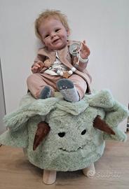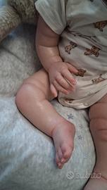 Ha corpo in stoffa ed arti in vinile, è completamente dipinto a mano con colori di qualità, presenta vene e rossori come un vero Bebè.