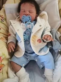 Il piccolo Tommy, peso 2 kg lunghezza 48 cm, corpo morbido in tessuto cerca una casa dove farsi ammirare. Nato dalle mie mani, ha i capelli radicati con tecnica rooting, dipinto con colori Genesis, arriverà così come é vestito in foto, il suo ciuccio magnetico e il certificato di nascita