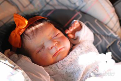 bambola reborn, molto realistica. vendo con corredino e ciuccio. come nuova tenuta sempre nella vetrinetta