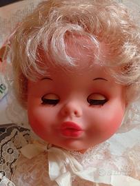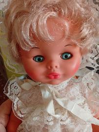 Bambola vintage Furga viso e braccia in vinile corpo in plastica rigida vestito e cuffia in merletto altezza 41cm ca