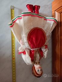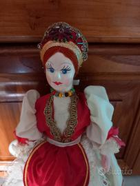 Bambola con vestito bielorusso con viso in ceramica, gambe e braccia imbottite. Altezza 28 cm