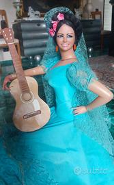 Vendo SPAGNOLA GIGANTE, h. cm 67. Marca Marin, Spagna, anni '60. In ordine, con base e chitarra.