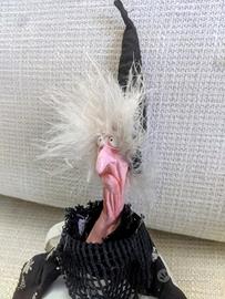 Particolare bambola vintage in porcellana e stoffa, rappresentante una strega, molto curata nei particolari.