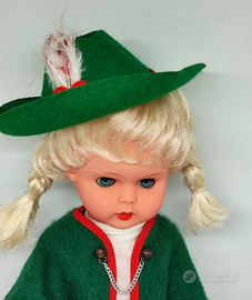 Stupenda e rara doll d'epoca tedesca in abito folcloristico tradizionale marchiata MMM (3M) vintage prodotta in Germania dalla fabbrica DREI tra gli anni 60 e 70 Made in West-Germany.