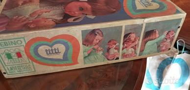 vendo bambola TITTI mamma di Cialdino SEBINO in scatola originale funzionante con meccanismo a carica che permette alla bambola di cullare il bimbo ed emette una ninna nanna condizioni perfette mai usata raro vintage alta 50 cm circa