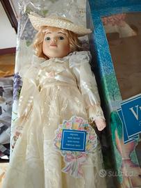 Bambola Victoria con viso, mani e piedi in porcellana. Nuova, sempre tenuta nella confezione, con ancora il cartellino.