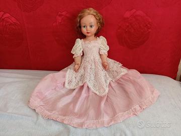 Bambola vintage con abito originale con qualche piccolo difetto dovuto all'usura. Altezza 50 cm