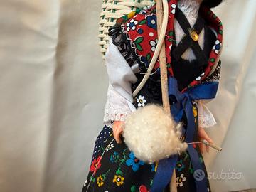 Splendida bambola souvenir vintage degli anni '60/'70, conservata con cura. Un pezzo di artigianato che rappresenta la vita rurale di un tempo, ricca di dettagli realistici.