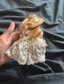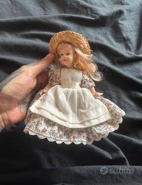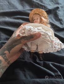 Vendo bambola in porcellana vintage con cappello di paglia e abito fiorito! Un pezzo dolce e raffinato, ideale per collezionisti di bambole d’epoca o come elemento decorativo dal fascino retrò! Un bellissimo oggetto da collezione che unisce semplicità ed eleganza!