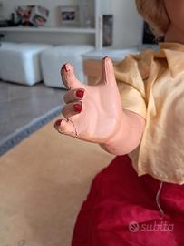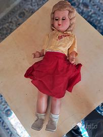 Vendo bambola anni 50 raffigurante commessa ALL' ONESTA'. Misura 80 cm. in altezza, è in materiale simile al gesso e necessita di alcune riparazioni: pupilla occhio ,dito mignolo, corda elastica interna ,dispositivo sonoro sulla pancia.