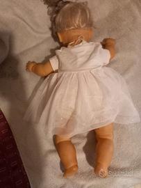 Vendo bambola vintage con palpebre che si aprono e chiudono in base a come si muove la bambola, si presenta come da foto usata, ma nel complesso in buone condizioni forse l'acconciatura sarebbe un po da rimettere in ordine ma nulla di più. Vendo a d euro 20,00 senza spedizione