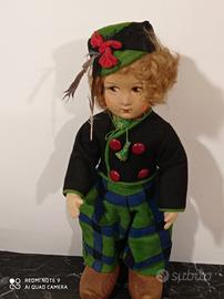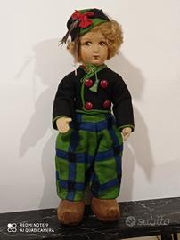 Coppia bambole antiche tedesche in porcellana marcate nella nuca,occhi di vetro, corpo snodato vestitini e accessori dell'epoca.Piu' bambola tipo lenci con zoccoli di legno , molto rara.