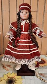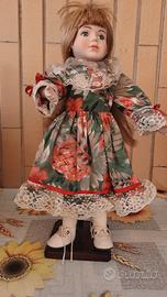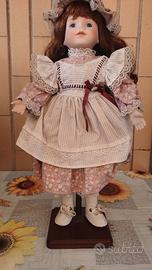 Set di 5 bambole da collezione in porcellana alte circa 40 cm complete di piedistallo in legno come da foto.