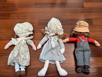 3 bambole in pezza (2 Holly Hobbie e una Sarah Kay) in buone condizioni (la bambola a sinistra ha il cappello e i capelli rivinati) degli anni 80 da collezione