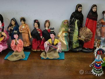 Lotto di 44 bambole anni 60'-70' di diversi paesi del mondo con costumi e oggetti caratteristici - vendita singoli pezzi o in blocco
