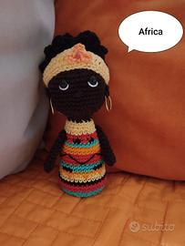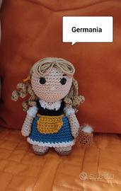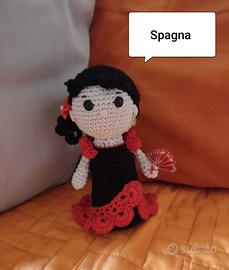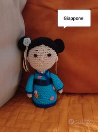 vendo bamboline rappresentanti stati del mondo, completamente realizzate a mano con tecnica amigurumi, altezza circa 15cm. Curate nei minimi dettagli e accessori (ventaglio, orecchini...) altezza circa 15cm. Il prezzo si riferisce alla singola bambola, scrivetemi se interessati