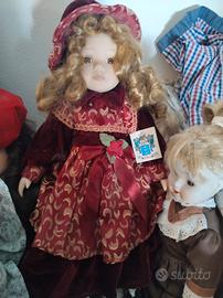 Originali bambole di porcellana realizzate a mano con tessuti ricercati, alcune hanno il certificato di garanzia. Le vendo a 30 euro a bambola, se si desidera la collezione completa composta da 15 bambole (presenti anche negli altri miei annunci perché per ogni annuncio posso caricare solo sei foto) faccio uno sconto e per la collezione completa chiedo 400 euro.