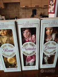 Bambole di porcella nella loro scatola originale (le scatole sono in buono stato solo qualche segno del tempo) le bambole sono in ottimo stato di conservazione una è ancora nella sua pellicola originale,ogni bambola è alta 40cm
