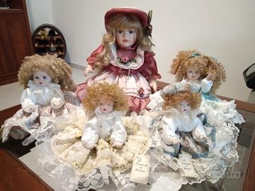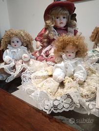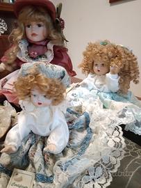 bambole di porcellana,la grande è stata messa in esposizione in una vetrina le piccole hanno ancora la scatola originale mai usate,