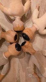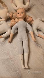 Teste: Realizzate in ceramica/biscotto con tratti facciali dipinti. Presentano occhi di diversi colori (blu e verde) e alcune hanno guance arrossate. Tutte le teste sono calve (alcune hannonumeri di serie sulla nuca)e necessitano di parrucche, con l'apertura per l'alloggiamento visibile. Si notano segni di usura e ingiallimento, in particolare sui colli e sulle giunzioni con il corpo