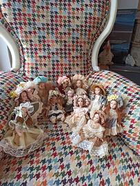 Vendo bambole da collezione in porcellana. Numero totale 28 bambole a € 200. Nel caso interessassero solo gruppi di bambole, il primo gruppo da 12 a € 60, il secondo, della serie Pinocchio, gruppo da 5 a € 60, il terzo gruppo da 5 a € 30, il quarto gruppo da 6 a € 40. Leggeri segni del tempo nei vestiti. Consegna esclusivamente a mano.