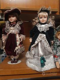 Bambole in porcellana antiche, per collezionismo ed esposizione. Leggermente usurate, ma comunque di bell'aspetto.