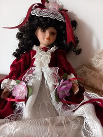 Vendo 3 bambole porcellana. La blu e la rossa hanno vestito di velluto. La blu e la rosa hanno certificato Capodimonte