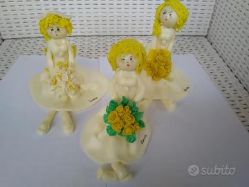 Lavorazione fatta a mano con la pasta di mais e dipinte manualmente. Costo di quella seduta ? 20,00, quella da appendere ? 15,00. Contattarmi pure per altre informazioni.