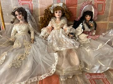Set di tre bambole vintage in ceramica in perfette condizioni, vendo per cambio casa con una molto più piccola