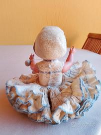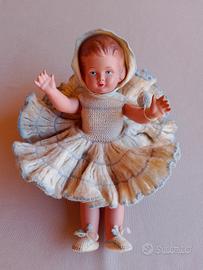 Bellissima bambolina anni '50 - '60, con vestitino e accessori originali, all'uncinetto (simil-uncinetto), in perfette condizioni.