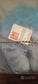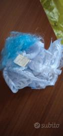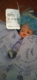 Bambolina vintage blu, anni 70 /80,il suo vestito è caratterizzato da abbondante pizzo e dettagli in un tono di azzurro tenue.