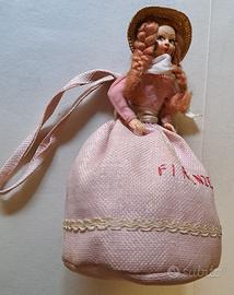 Bambolina vintage souvenir di Firenze anni '50 con gonna a sacco di rafia, da collezione.