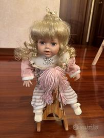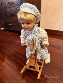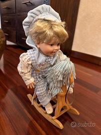 Vendo coppia bamboline artigianali con testa in ceramica, vestite in stile infantile con abiti in cotone e lana cuciti a mano e piccoli cavallini a dondolo. Sono Bamboline dal fascino vintage e curate nei dettagli. Sono in ottime condizioni. Le dimensioni sono: - Cesta larghezza cm 60, profondità cm 30 e altezza (punto massimo) cm 43 - Bamboline larghezza cm 18, profondità cm 20 e altezza (compreso cavallino) cm 38 Viste le caratteristiche del prodotto e la delicatezza del trasporto, possibilmente acquirenti in zona per organizzare la consegna.