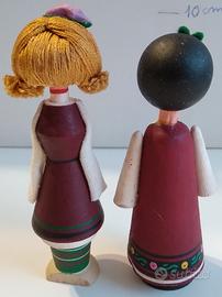 Bamboline vintage in legno dipinte a mano, artigianato della Bulgaria. Una è un porta profumo, all'interno ci sta un flaconcino di profumo non in dotazione. EURO 9 L'UNA.