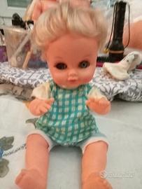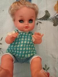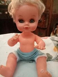 Vendo Bambolotto della Sebino anni 60 occhi perfetti ciglia presenti capelli saldi abito originale braccia gambe e testa in vinile corpo in plastica alto cm 25.