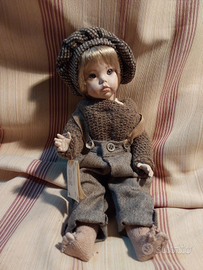 Bambolotto"giovanni"interamente in porcellana bisquit abiti fatti a mano, capelli veri occhi in vetro costruito da marigio' Bologna h.32cm. Serie limitata n.73/1000 copia del monello del film "ladri di biciclette "di Charlie Chaplin.da collezione. Visibile a Modena
