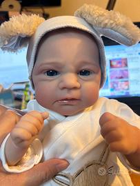 Bambolotto neonato Reborn 50 CM in vinile morbido, corpo in stoffa, con accessorio nuovo, solo scartato. Ha tutto in completo (ciuccio, biberon, pannolino, ecc). Vendo per doppio regalo