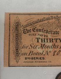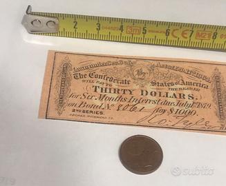 Banconota Americana antica di cedola interessi di obbligazioni 1864 $ 30 Richmond, VA scaden !