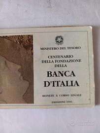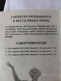 BANCA D'ITALIA 100 200 500 LIRE 1993 CENTENARIO DELLA FONDAZIONE TRITTICO FDC ARGENTO