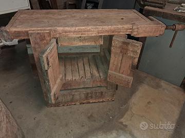 Banco da falegname vintage in buono stato con antine frontali e morsa laterale. Ritiro a carico dell'acquirente.