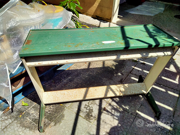 Banco o tavolo da lavoro industriale vintage interamente in ferro, nei classici colori avana e verde dell'epoca. Ottimo come semplice banco da lavoro o se ridipinto in altri colori , bellissimo come arredamento industriale, tipo consolle , vista la sua misura non ingombrante . Misure e particolari visibili nelle varie foto che fanno parte integrante della descrizione. Solo ritiro a carico dell'acquirente.