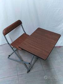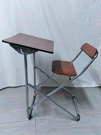 In vendita un pezzo di modernariato per ragazzi unico nel suo genere: un set combinato sedia-scrittoio dal design intelligente e salvaspazio.